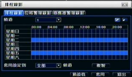 隱私遮罩:用戶可將現場畫面中的某些區域遮罩起來, 每一頻道最多可設定三處 設定遮罩區域︰點擊“設定”按鈕,進入現場畫面, 按住滑鼠左鍵, 拖動滑鼠設定遮罩區域, 點擊“應用”按鈕儲存設定 刪除遮罩區域︰選擇某一遮罩區域, 點擊滑鼠左鍵即可刪除遮罩區域, 點擊“應用”按鈕儲存設定 遮罩區域將不會錄影在DVR設備上 |